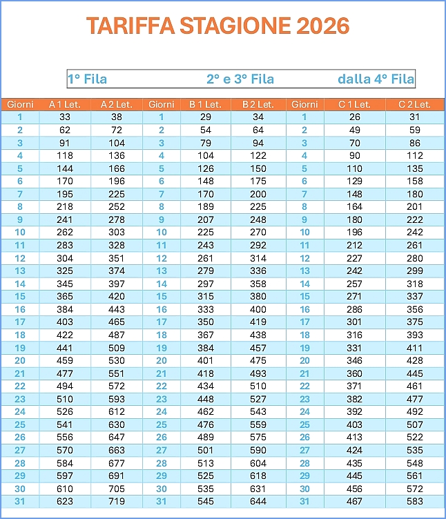 Prezzi di spiaggia stagione balneare 2026